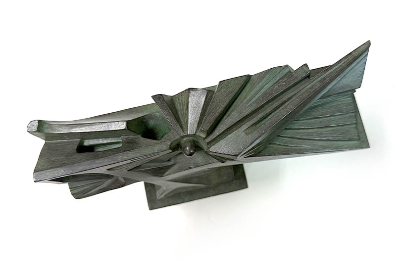 外形乍看,像是一個兩手伸開作展翅狀的人形,其實,正如作品標題所明示,這是一件風景的雕塑。
