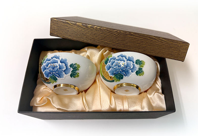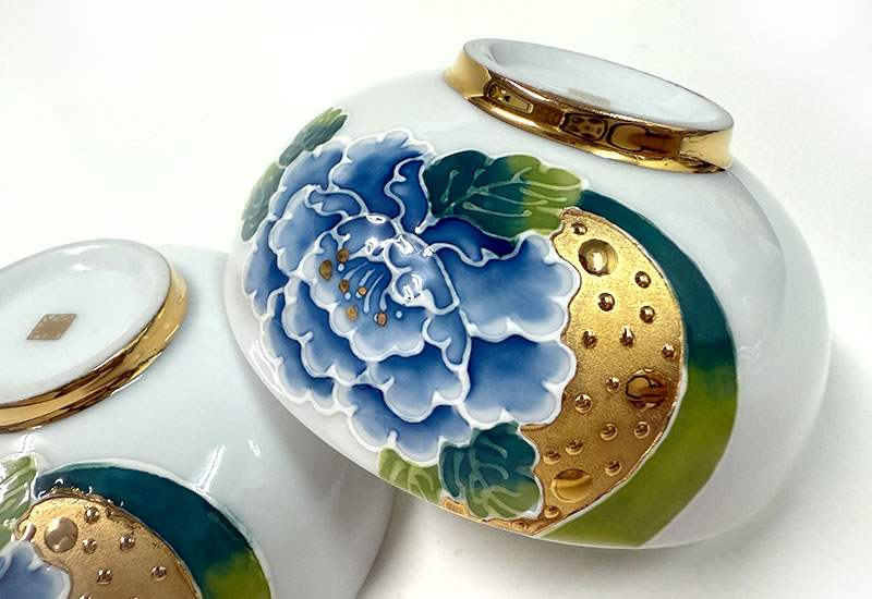 對杯以牡丹象徵富貴華麗,搭配金魚寓意年年有餘,吉祥富足,傳遞圓滿與喜慶